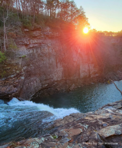 Nestled inside beautiful DeSoto State Park, DeSoto Falls is a powerful cascade that plunges dramatically into the forested canyon below, creating one of Lookout Mountain’s most iconic views.