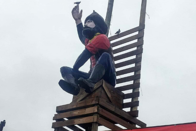 Not every roadside statue has a backstory, but that doesn’t make it any less interesting!  Just outside of Rainsville, standing tall at the entrance to the Barter Post, is a giant old prospector statue, now repurposed as a friendly roadside mascot. With one arm raised in a wave, he greets every traveler who passes by like an old friend.