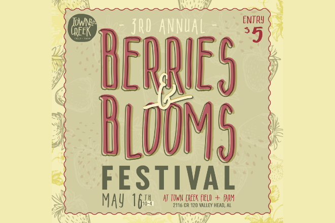 Berries & Blooms Festival Town Creek Field & Farm is excited to announce their 2nd annual festival at the farm!! You will get the chance to pick berries, pick flowers and do bouquet making. There will be local music, vendors, yard games, and more!