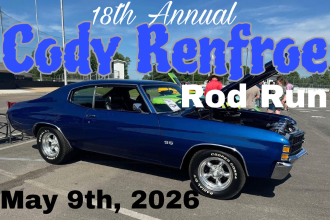 17th Annual Cody Renfroe Rod Run Come out and have a day with us for the 17th annual Cody Renfroe Rod Run. Will be at the Crossville City Park. There will be lots of food and prizes. There will be no entry fees so if proud of it bring it!