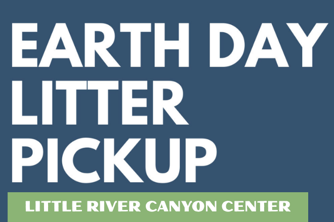 Earth Day Litter Pick Up Celebrate Earth Day by helping us clean up the park! We will meet at the Little River Canyon Center at 10 am and go clean up the Little River Falls parking lot, picnic area, and trail area. Bring a water bottle, wear sturdy footwear, and snacks if needed. All ages welcome! All supplies will be provided! Come be a volunteer for a couple of hours and help us beautify the park!