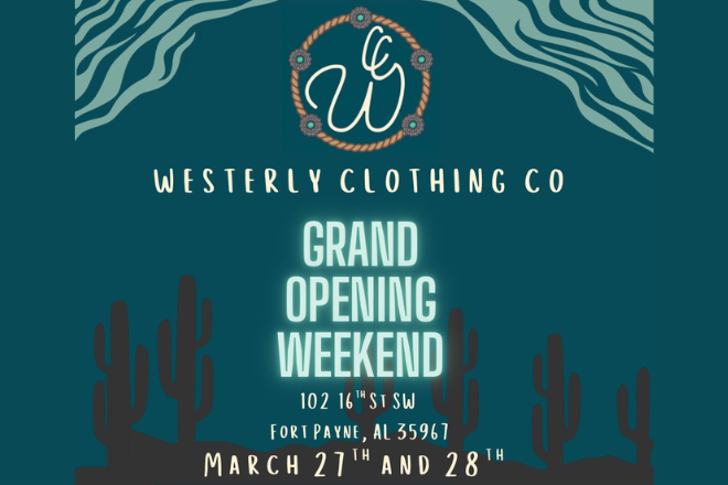 Grand Opening at Westerly Clothing Co Join us for our grand opening! We will have goody bags for the first few customers and plenty of giveaways for the rest!