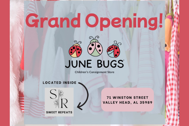 Grand Opening at June Bugs Join us as we bring you a curated selection of gently used kids’ clothing and accessories—all at fantastic prices! We are working hard to open our very own storefront in the near future, but while we wait for our building to be ready, we can’t wait to meet all of you and share our love for sustainable shopping at Sweet Repeats!