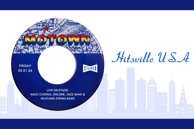 NACC Music Dept Presents “Hitsville, USA” The NACC Department of Music live on stage as they present the music of Motown! The NACC Chorus, Encore, Jazz Band and the Mustang String Band will all be live on stage. Everyone invited to come enjoy!