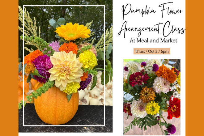 Pumpkin Flower Arrangement Class Join Town Creek Field and Farm at Meal & Market in Fort Payne for a pumpkin flower arrangement class! We will provide some seasonal refreshments to enjoy! PM @towncreekfieldandfarm to reserve your spot!! At Meal and Market downtown Fort Payne